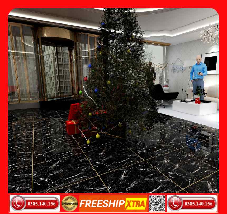 Gạch 60×60 Granite màu đen tia chớp xám bóng ốp cột VIN6688