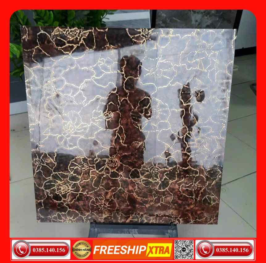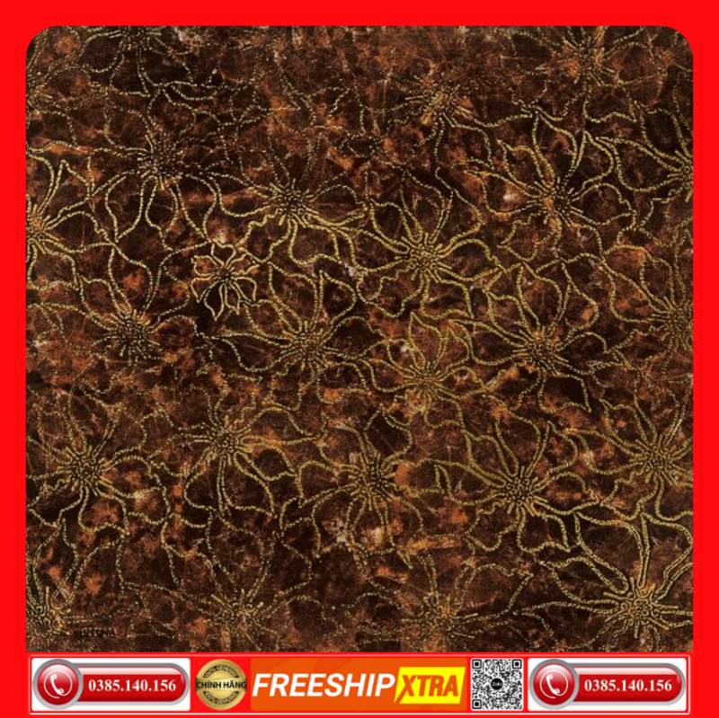 Gạch 60×60 Granite màu nâu khắc kim hoa vàng carving VIN6686