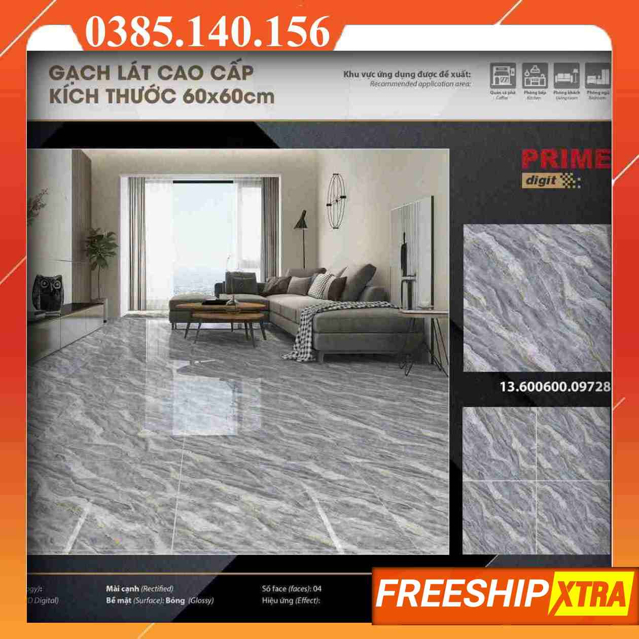 Gạch 60×60 Prime 09728 vân mây màu xám